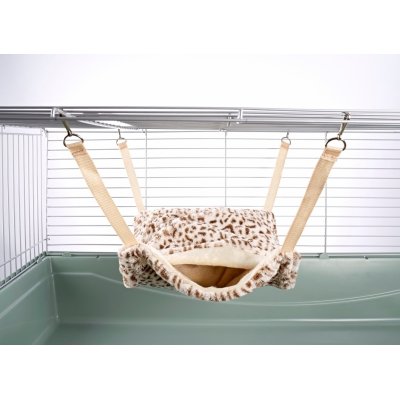 Hammock with pouch – designed for larger pets such as ferrets, rats and chinchillas. Easy to hang in your cage as the item comes with metal clips attached to four straps. This item can be either hung vertically (where animals can hide in the pouch) or horizontally where they can snuggle under the covers. This item is great for up to 4 rats or 1-2 ferrets.
