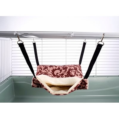 Hammock with pouch – designed for larger pets such as ferrets, rats and chinchillas. Easy to hang in your cage as the item comes with metal clips attached to four straps. This item can be either hung vertically (where animals can hide in the pouch) or horizontally where they can snuggle under the covers. This item is great for up to 4 rats or 1-2 ferrets.
