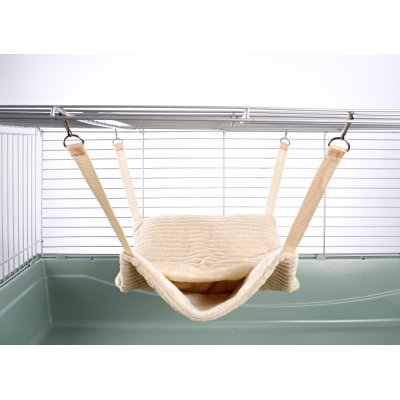 Hammock with pouch – designed for larger pets such as ferrets, rats and chinchillas. Easy to hang in your cage as the item comes with metal clips attached to four straps. This item can be either hung vertically (where animals can hide in the pouch) or horizontally where they can snuggle under the covers. This item is great for up to 4 rats or 1-2 ferrets.
