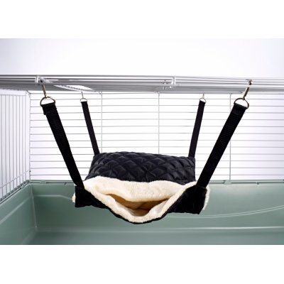 Hammock with pouch – designed for larger pets such as ferrets, rats and chinchillas. Easy to hang in your cage as the item comes with metal clips attached to four straps. This item can be either hung vertically (where animals can hide in the pouch) or horizontally where they can snuggle under the covers. This item is great for up to 4 rats or 1-2 ferrets.