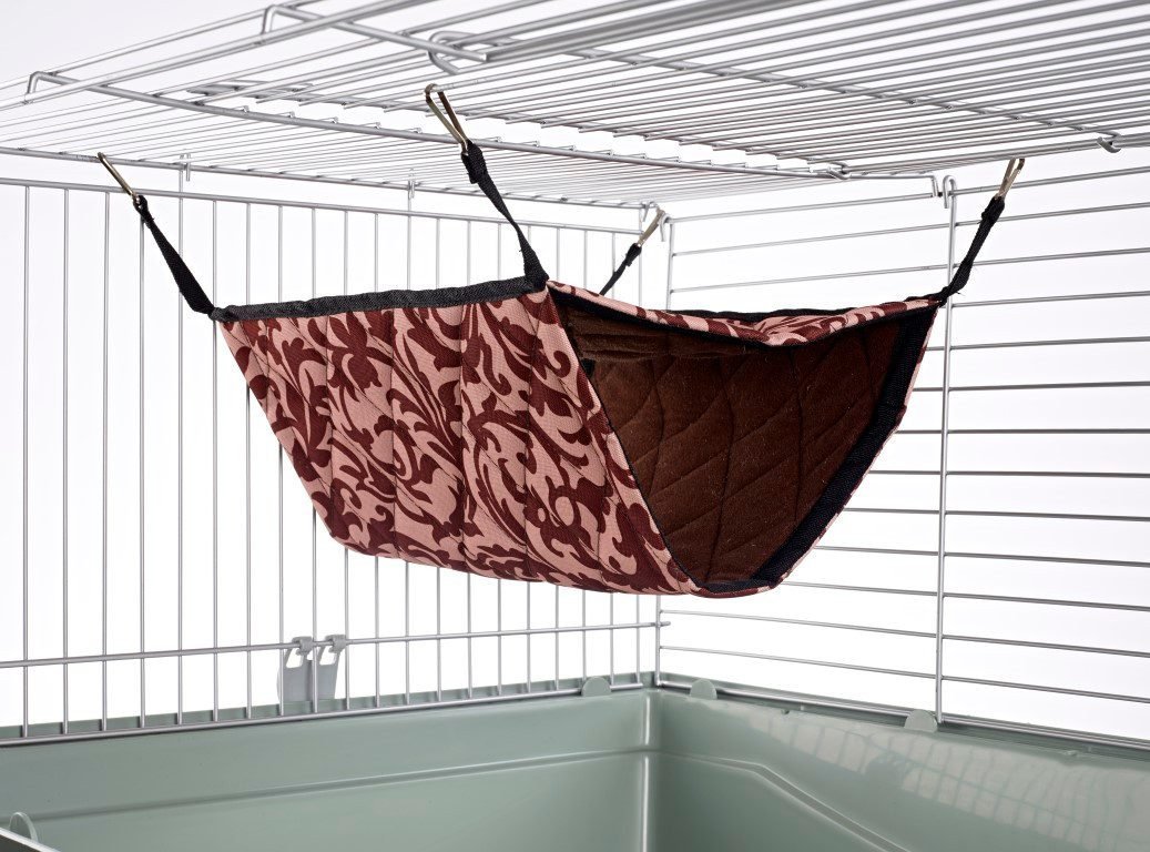 Superb quality and one of the larger small animal items we sell. It is made from quilted type material and attaches to the cage with clips. There are two options for pets who can either lounge on the top layer or snuggle in the bottom one. MEASUREMENTS: Bottom section 40cm (16″) along the front edge. Top section 30cm (12″) along the top edge and 30cm (12″) deep. This item will comfortably fit 2 adult ferrets or 5+ adult rats. This toy is part of our specialist range of small animal products. Similar matching items are available in our shop.