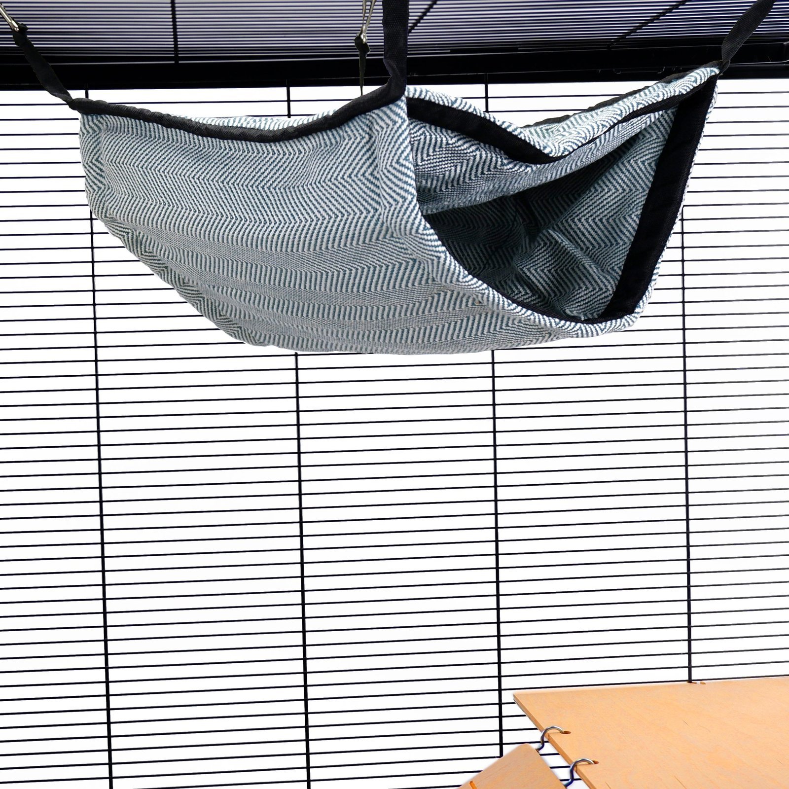 The Pet Rat Ferret Chinchilla Giant Double Bunkbed in Green Herringbone from Little Friends is a spacious, stylish lounging option for small pets. Made from eco-friendly polyester material, this double-level bed features a quilted design that attaches securely to cages with clips. It provides two comfortable lounging options – a top layer and a cosy bottom layer – allowing your pets to choose their preferred resting spot.