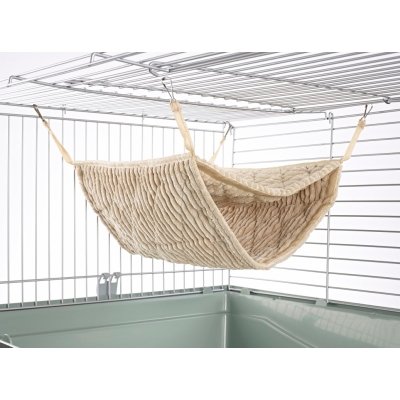 Superb quality and one of the larger small animal items we sell. It is made from quilted type material and attaches to the cage with clips. There are two options for pets who can either lounge on the top layer or snuggle in the bottom one. MEASUREMENTS: Bottom section 40cm (16″) along the front edge. Top section 30cm (12″) along the top edge and 30cm (12″) deep. This item will comfortably fit 2 adult ferrets or 5+ adult rats. This toy is part of our specialist range of small animal products. Similar matching items are available in our shop.
