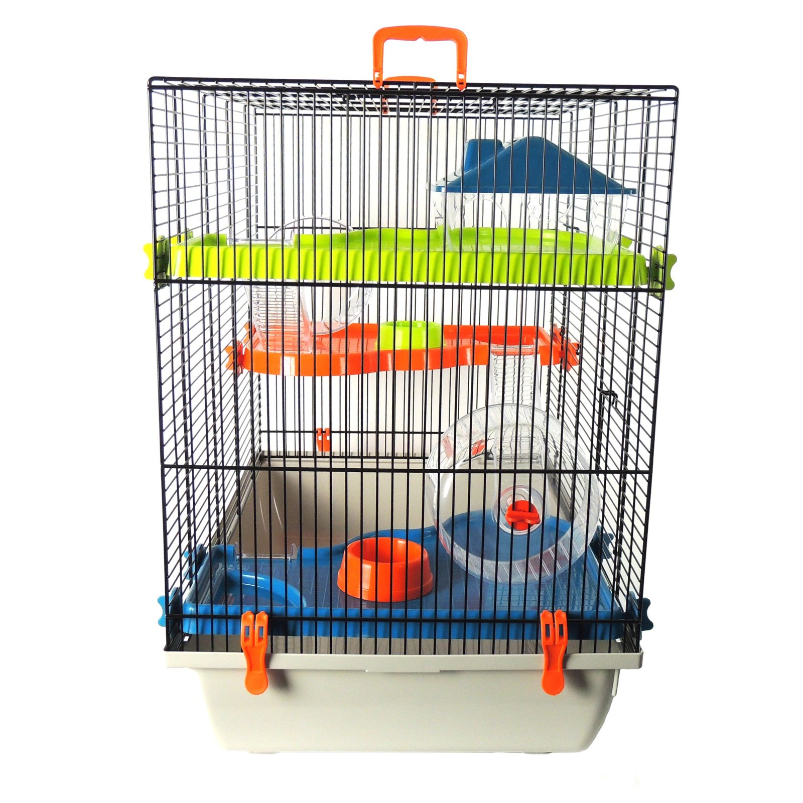 The Hamster Cage Roxburghe 58x38x55cm with Accessories | Little Friends is a deluxe multi-level enclosure, designed to provide comfort, security, and entertainment for your hamster or small pet.