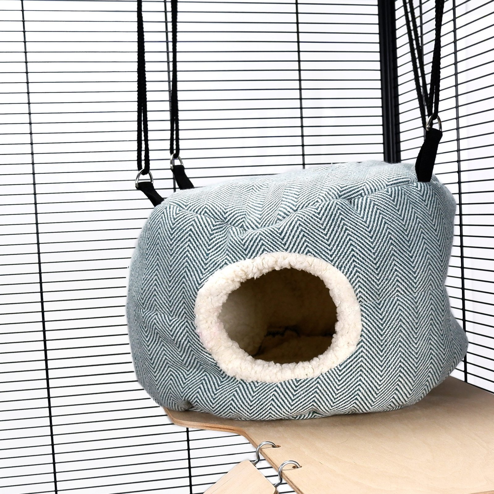 The Pet Rat Ferret Chinchilla HUGE Rodent Hive in Green Herringbone by Little Friends offers the ultimate playtime experience for small pets. Made from eco-friendly polyester material, this spacious toy provides a fun hideaway that can be attached to the cage or stand freely. With its generous size and stylish design, it’s perfect for multiple small animals to enjoy simultaneously.