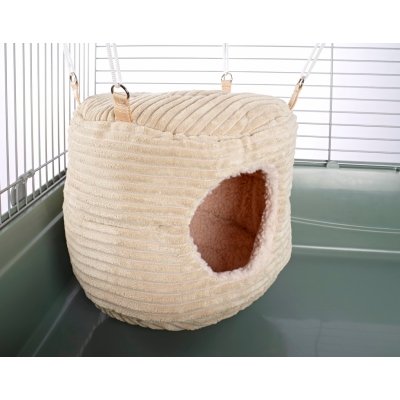 These specially designed rat toys are adored by small animals and are also suitable for chinchillas and guinea pigs. There are straps provided to attach it to the top of the cage if required but this toy is semi rigid on its own and can be used freestanding. MEASUREMENTS: This is a BIG toy. It can be freestanding or can hang using the clips provided. 30x30x25cm (12x12x10″). This toy will comfortably fit 4+ adult ferrets or 9+ adult rats (even cats can fit in this one – it is HUGE!). This is part of our range of specialist small animal toys. Matching items are available in our shop.