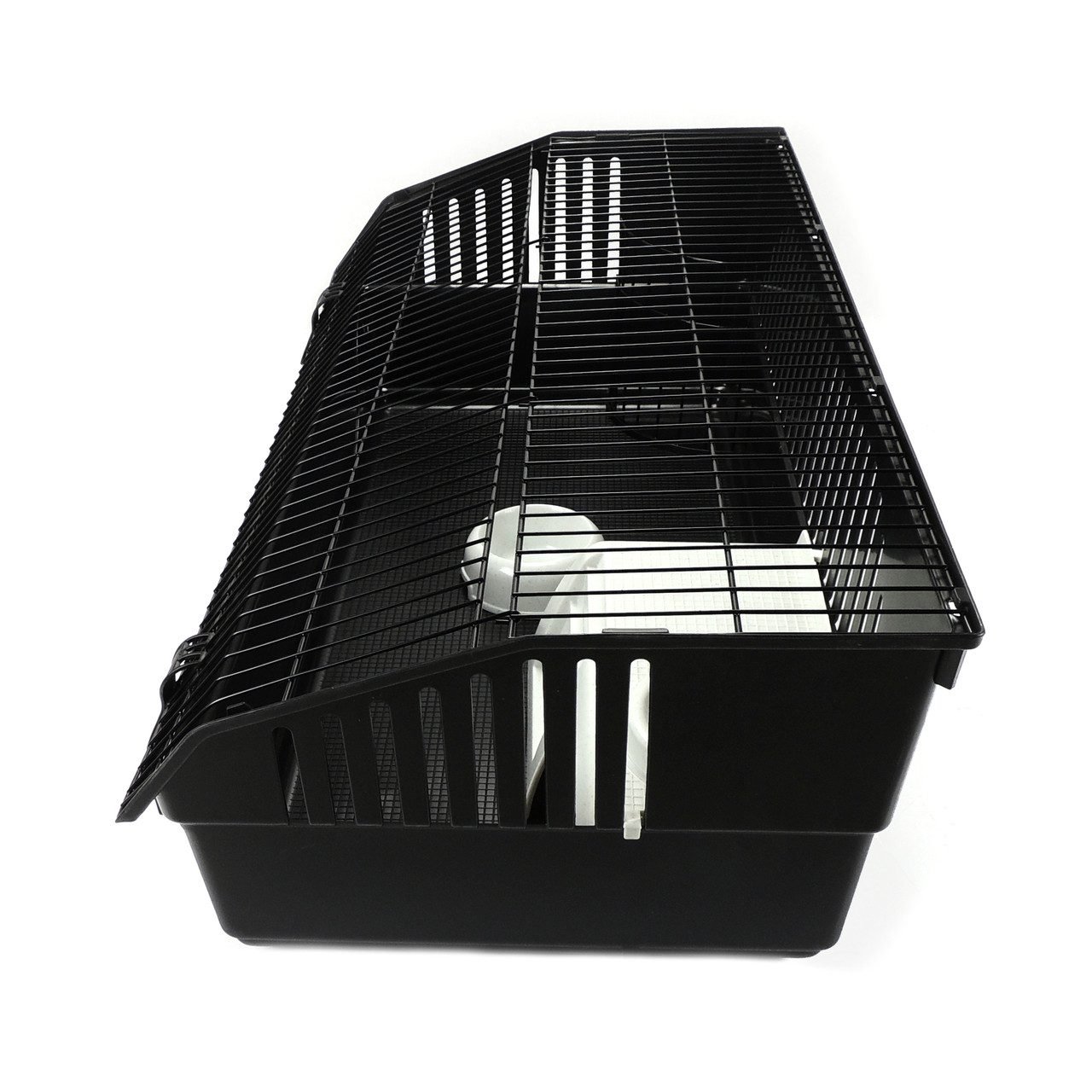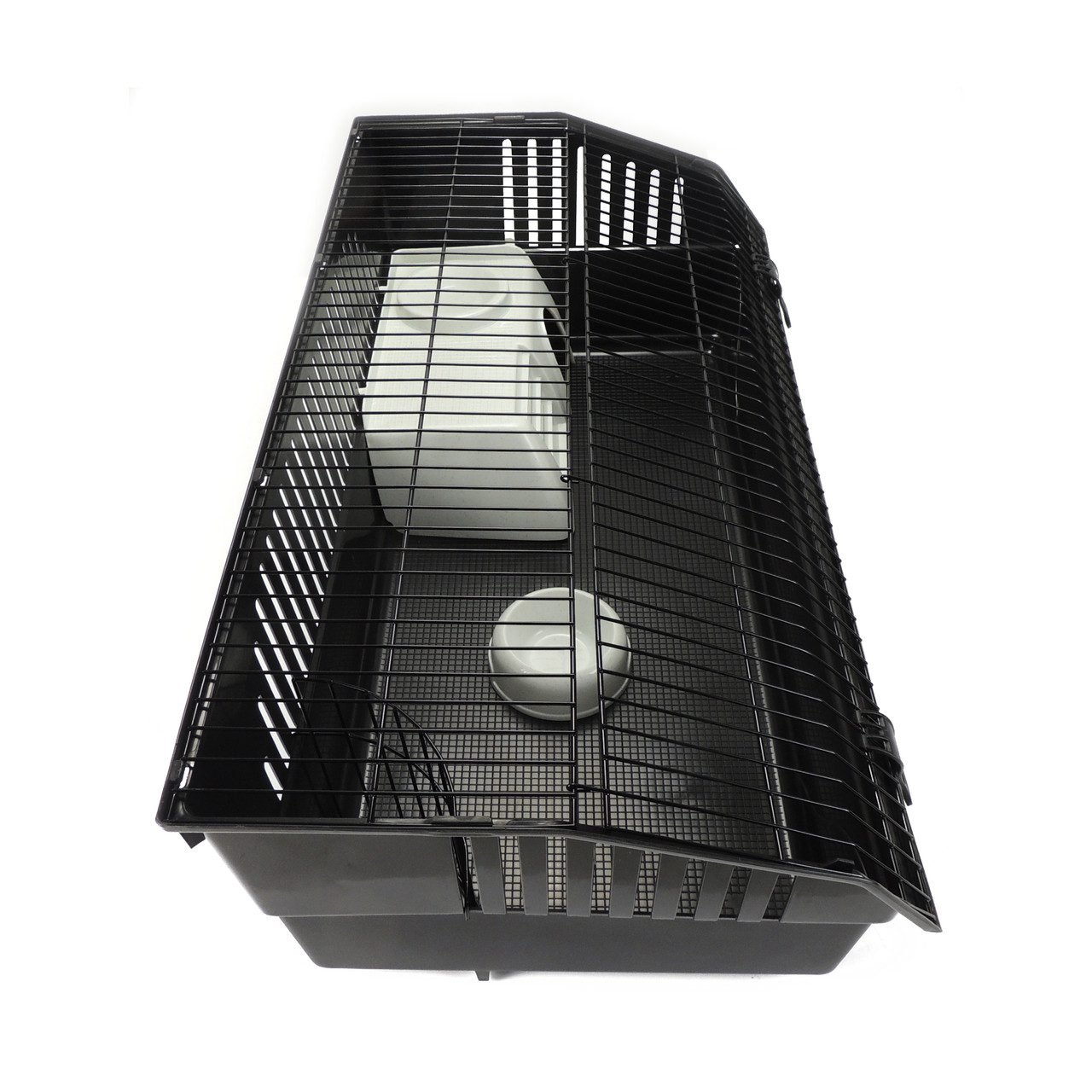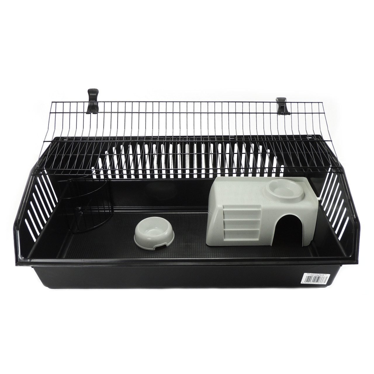 Rabbit 100 Deluxe Cage. Black base with black bars. Large front opening door.