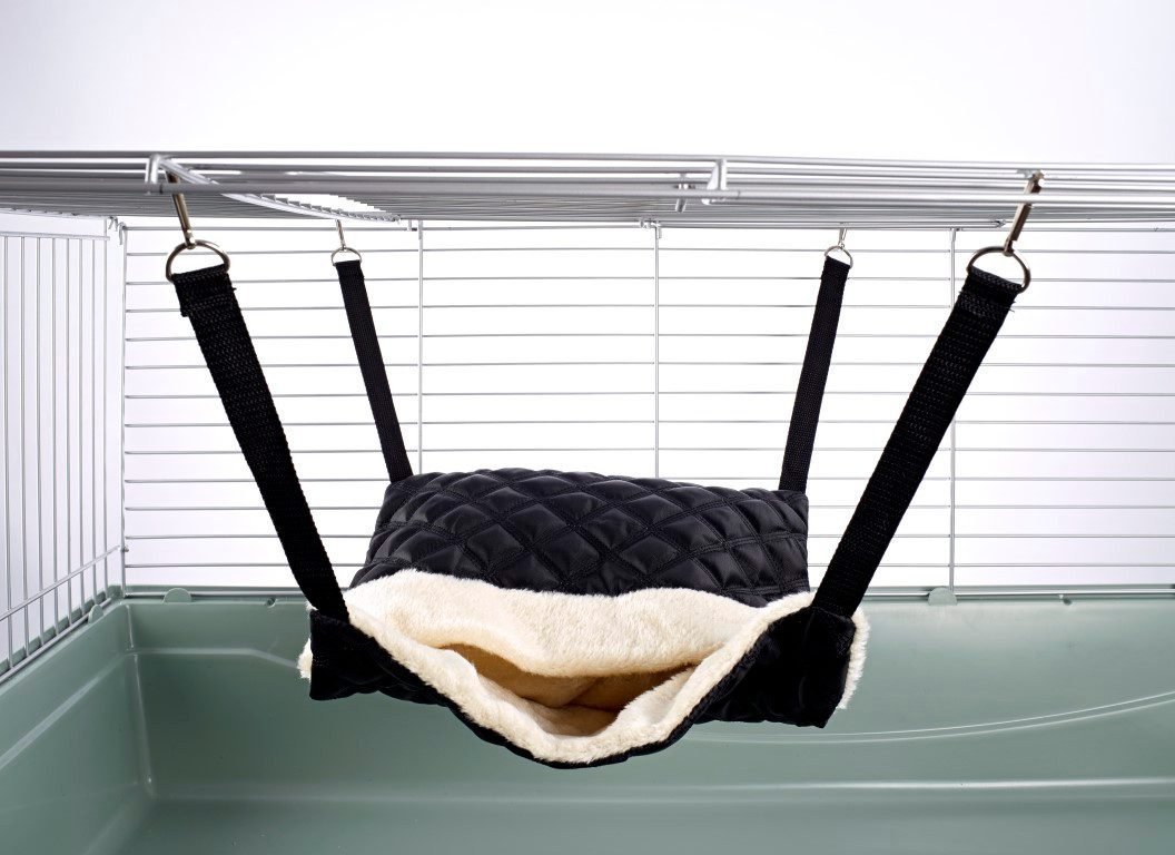 Pet Rat Ferret Chinchilla Fluffy Lined Hammock with Pouch – Quilted Black | Little Friends