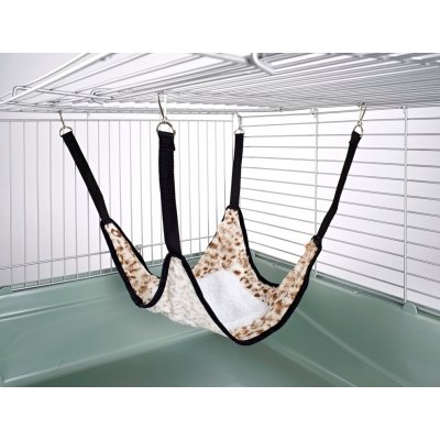 Plain Hammock With Fleece Center. Part of our large range of specialist small animal toys. This is a variation on standard hammocks. It is large and so it suitable for larger pets such as ferrets and chinchillas in addition to being perfect for rats! The center of the hammock has a section of fleece attached to it – perfect for those cosy nights snuggled up with a friend! All our toys are machine washable at 30 degrees in a washing machine. This measures 50cm (20″) corner to corner – the main body of the hammock is approx 30cm (12″) and the fleece section is 20cm (8″) wide. This will fit up to 4 adult rats at a time.