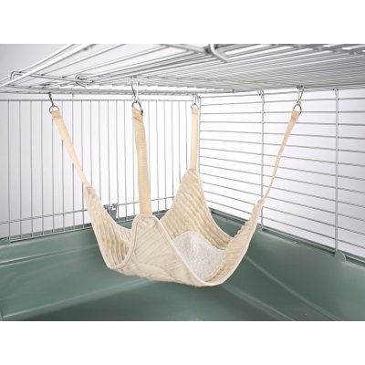 Plain Hammock With Fleece Center. Part of our large range of specialist small animal toys. This is a variation on standard hammocks. It is large and so it suitable for larger pets such as ferrets and chinchillas in addition to being perfect for rats! The center of the hammock has a section of fleece attached to it – perfect for those cosy nights snuggled up with a friend! All our toys are machine washable at 30 degrees in a washing machine. This measures 50cm (20″) corner to corner – the main body of the hammock is approx 30cm (12″) and the fleece section is 20cm (8″) wide. This will fit up to 4 adult rats at a time.