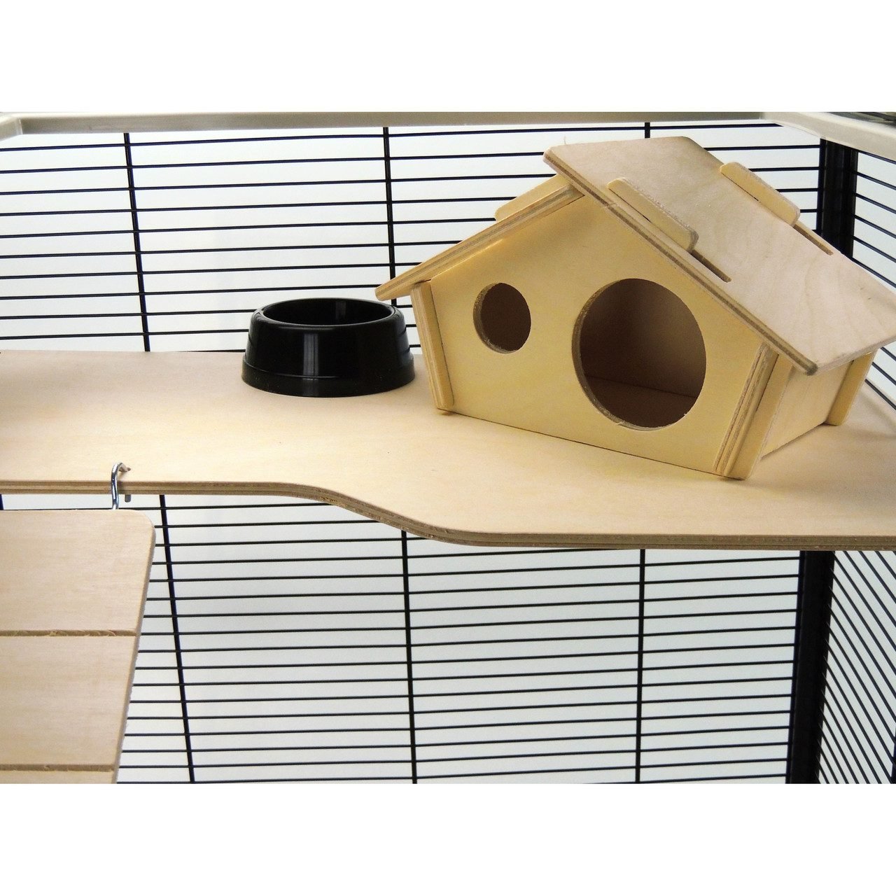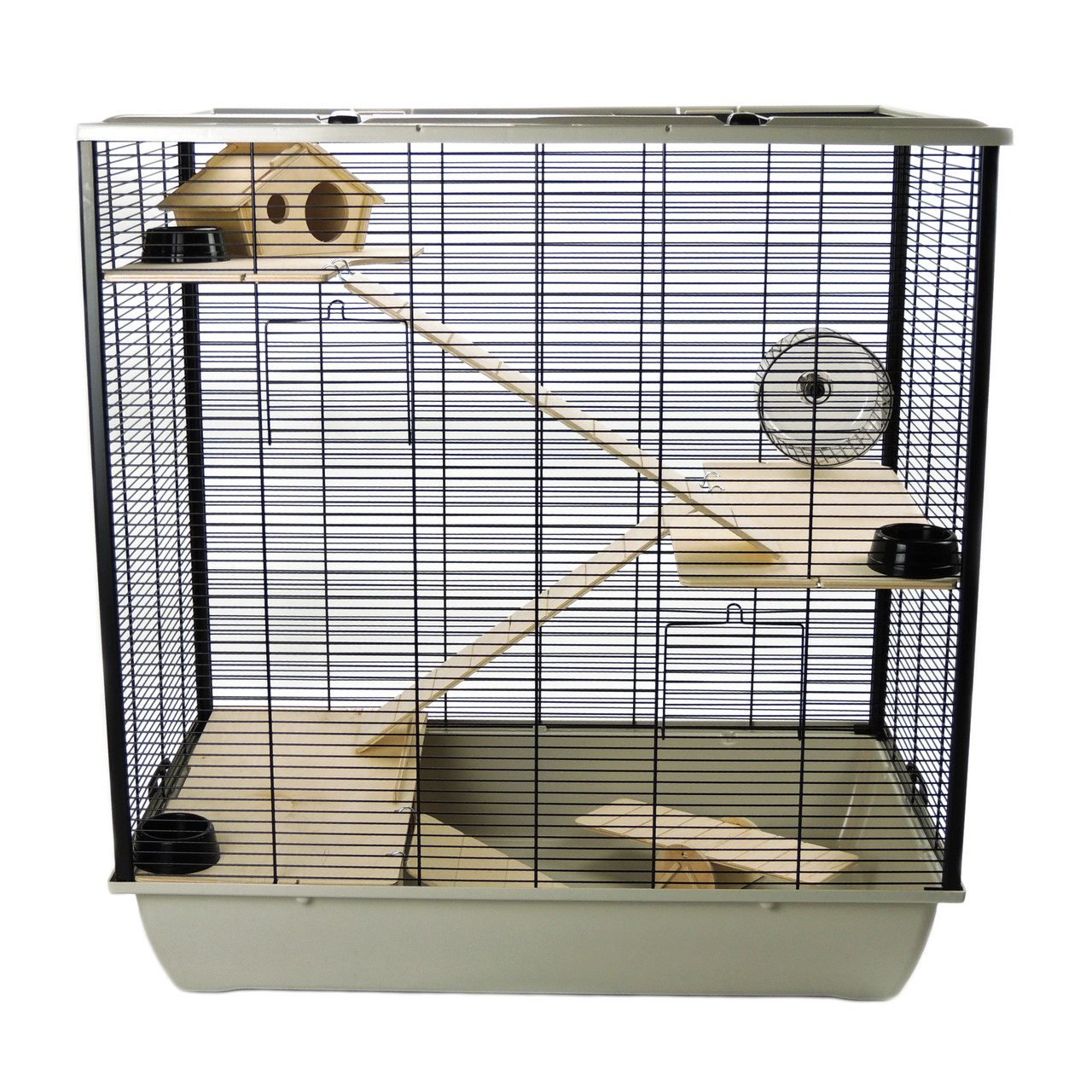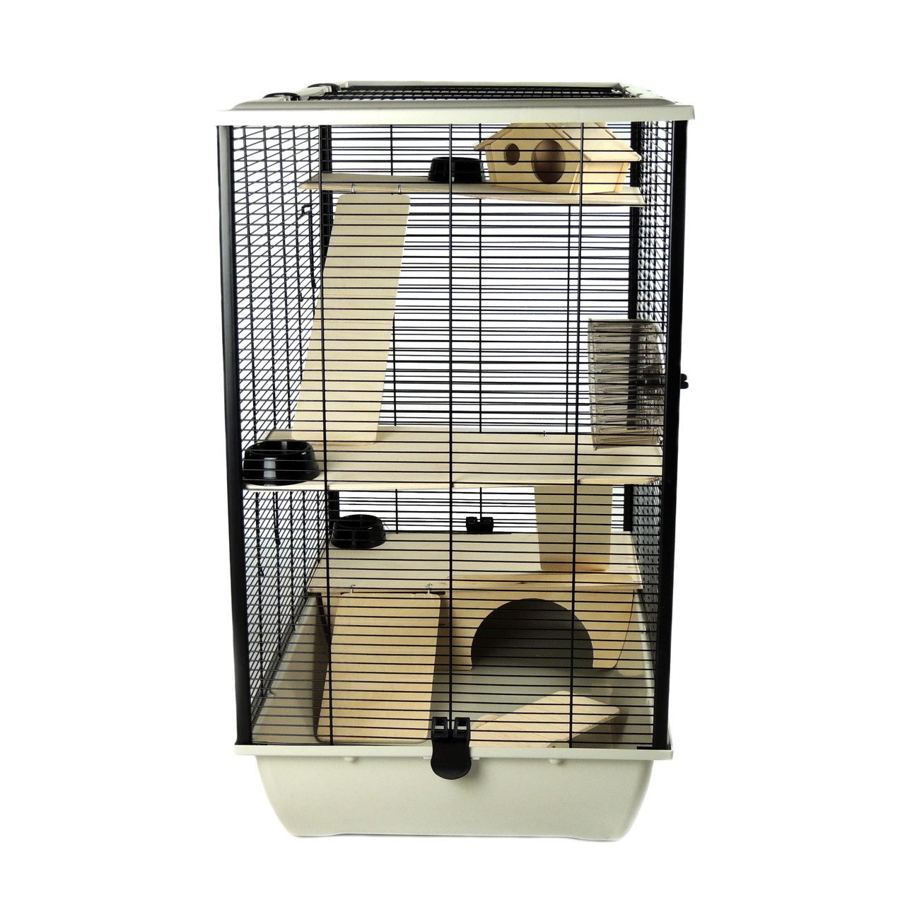 The Plaza Large Rat Hamster Mouse cage is our ultimate pet home. With two floors and three shelves, two ladders, and a multi-level climbing system, this cage provides your furry friend with plenty of room to roam around in. The shelves and ladders ensure your pet has access to different levels so they can climb, hide or enjoy more space! The cage will fit in any living space and does not take up much room. All accessories are included to make your pets stay as comfortable as possible leaving you feeling stress-free about the place you keep them safe.
