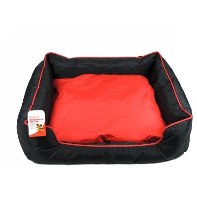 Rectangle Waterproof Dog Bed – Black / Red – SMALL – 50cm x 43cm x 19cm