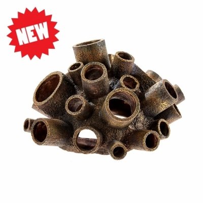 From Classic’s Designer Collection this multi- tube/cave swim through ornament looks even better when submerged and partially buried in the “sea bed” and small fish just love to hide and swin through this interesting ornament which has a decidedly modern and industrial look.