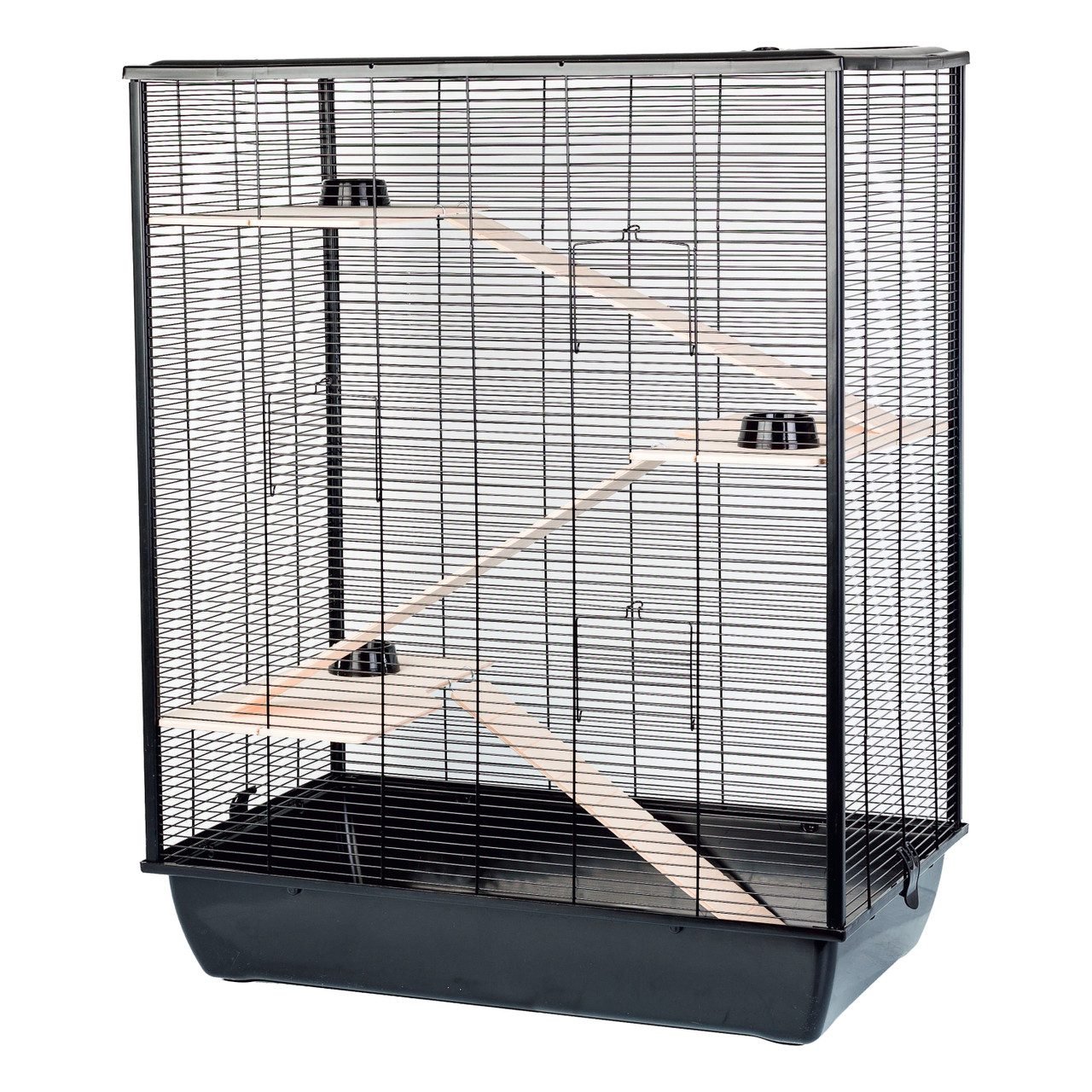 The Belfry Rat Hamster Cage is an elegant, modern design. It’s ideal for keeping pet rats, hamsters, chinchillas, and other small-sized animals. The cage comes with three shelves and three ladders forming a multi-floor system. You also receive three plastic bowls to fill with water and food. This cage is easy to assemble and also easy to clean. This cage is part of our space-saving range and is easily collapsible for storage.
