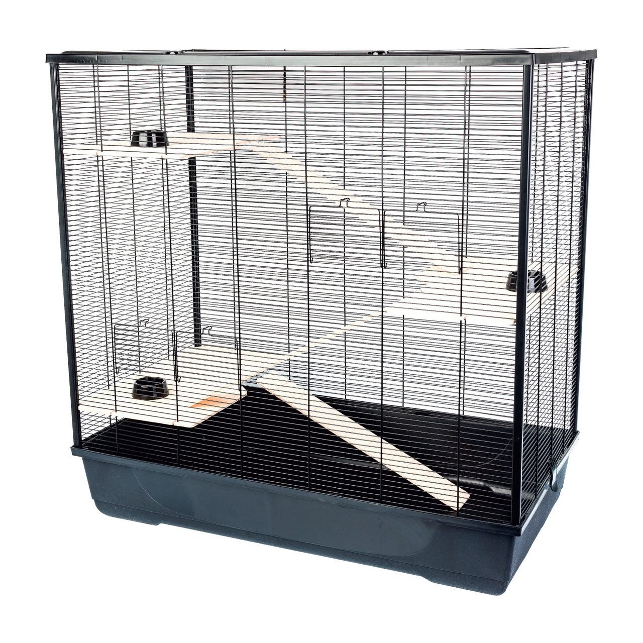 The giant-sized version of our original Belfry cage. The Belfry Extra Large Rat Hamster Cage is an elegant, modern design. It’s ideal for keeping pet rats, hamsters, chinchillas, and other small-sized animals. The cage comes with three shelves and three ladders forming a multi-floor system. You also receive three plastic bowls to fill with water and food. This cage is easy to assemble and also easy to clean. This cage is part of our space-saving range and is easily collapsible for storage.