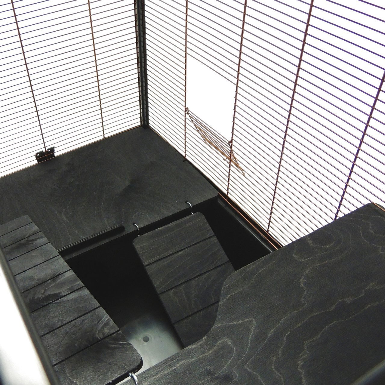 The cage comes with two shelves and two ladders forming a multi floor system (as shown)!