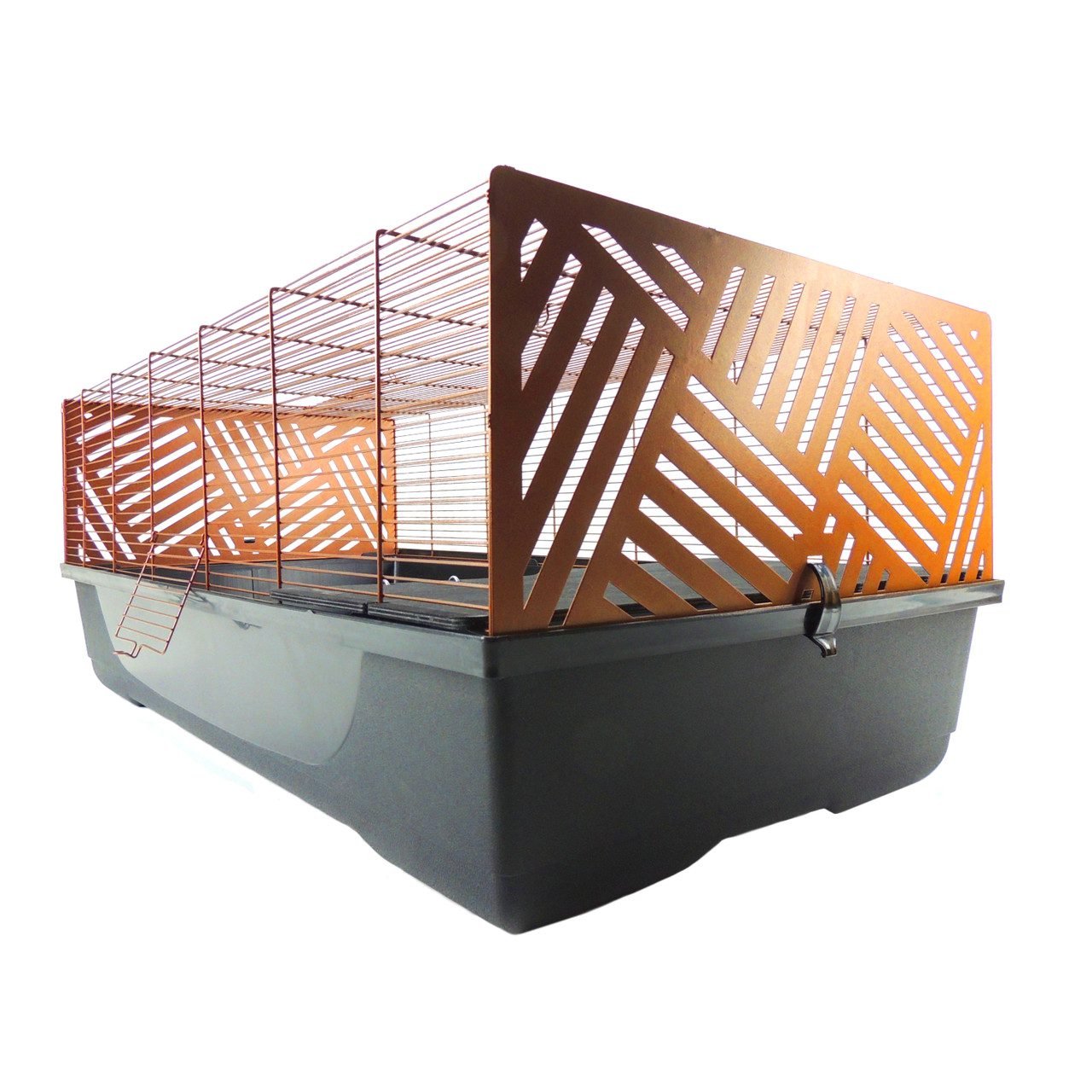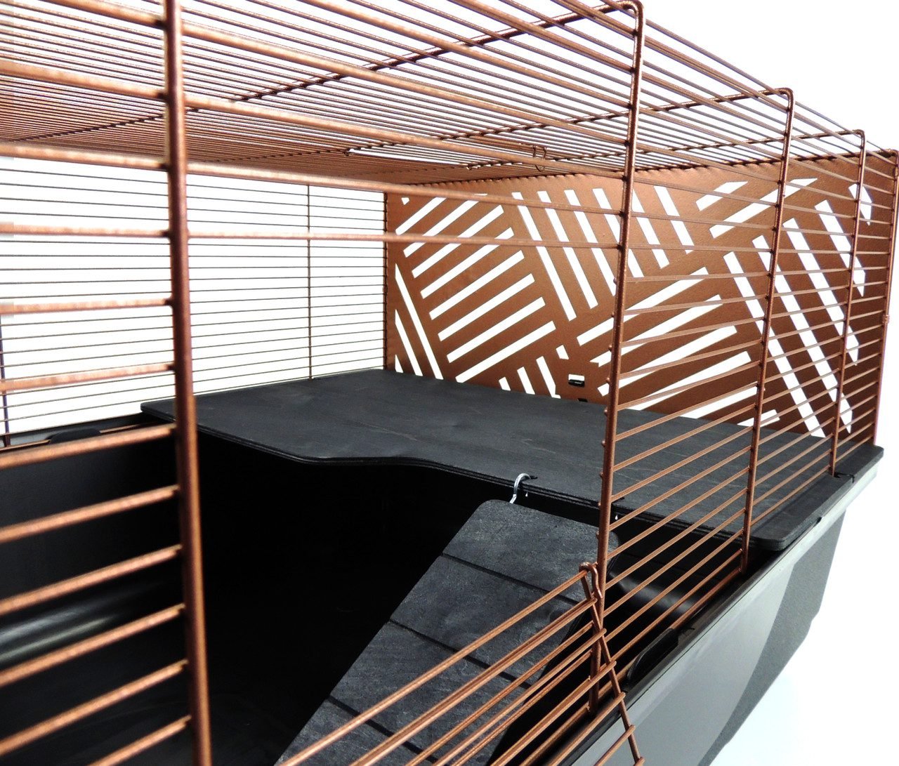 Is ideal for Rats, Hamsters and other similar sized small pets. It features copper coloured bars that give this cage a stylish and modern look and comes complete with a wooden shelf and ladder.
