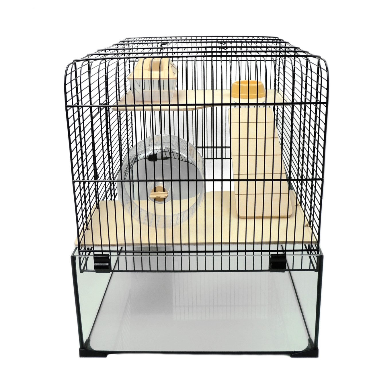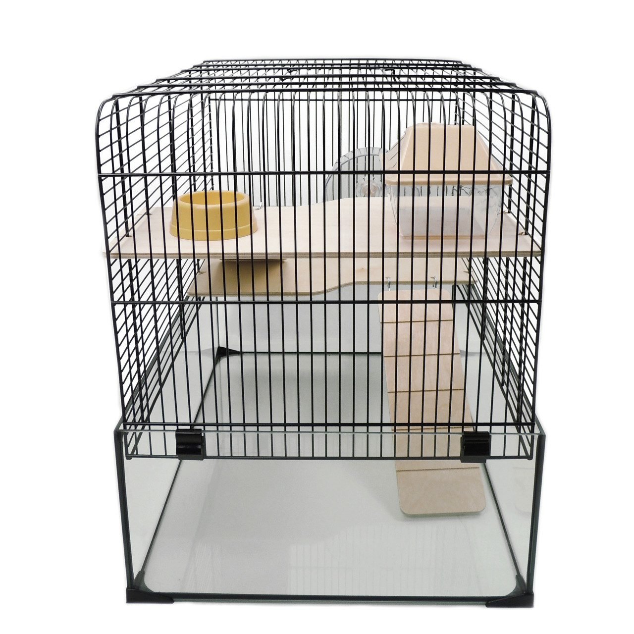 - The base of this cage is made of glass, not like many other cages of this kind about which are made of plastic this ensures durability.