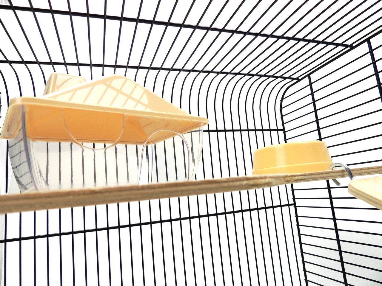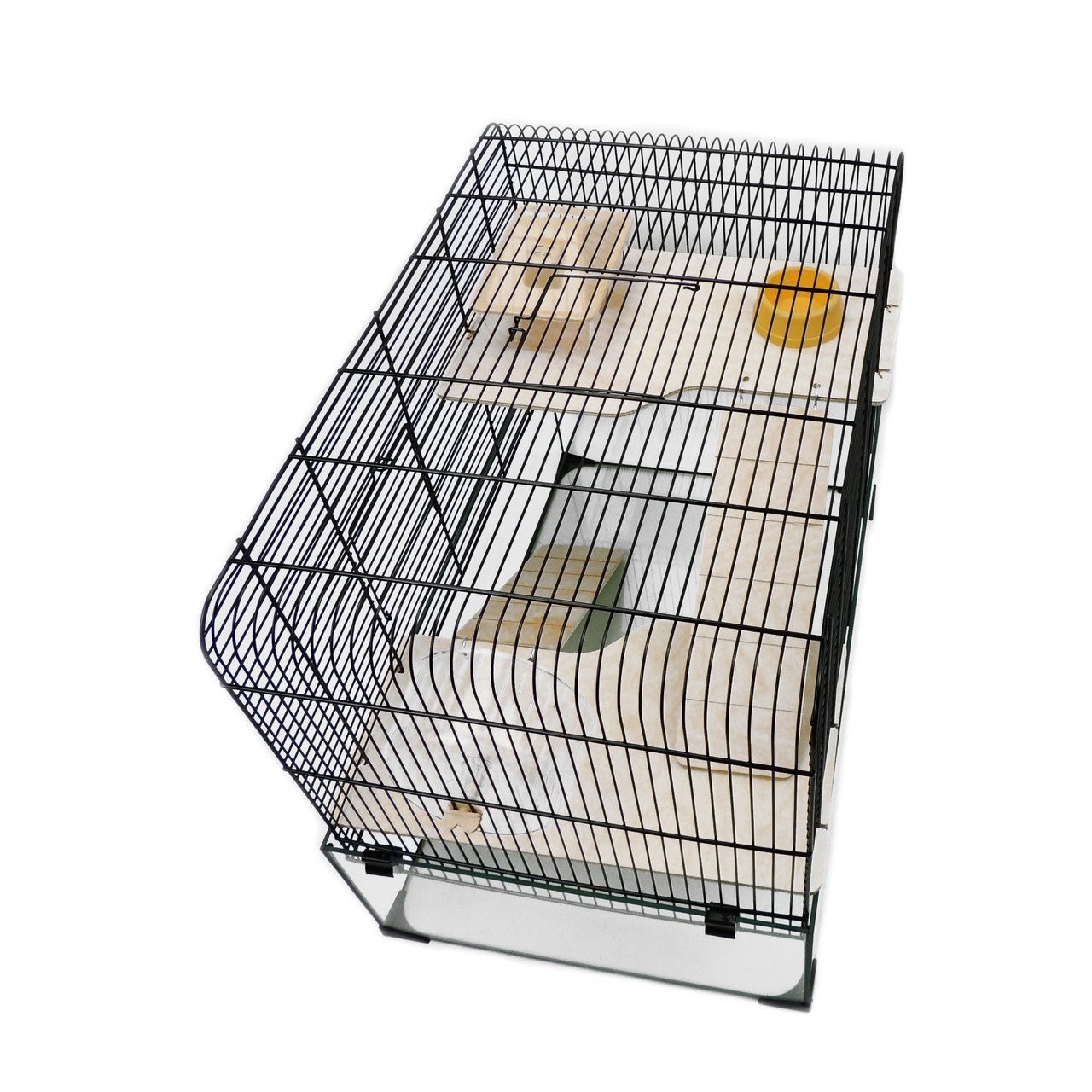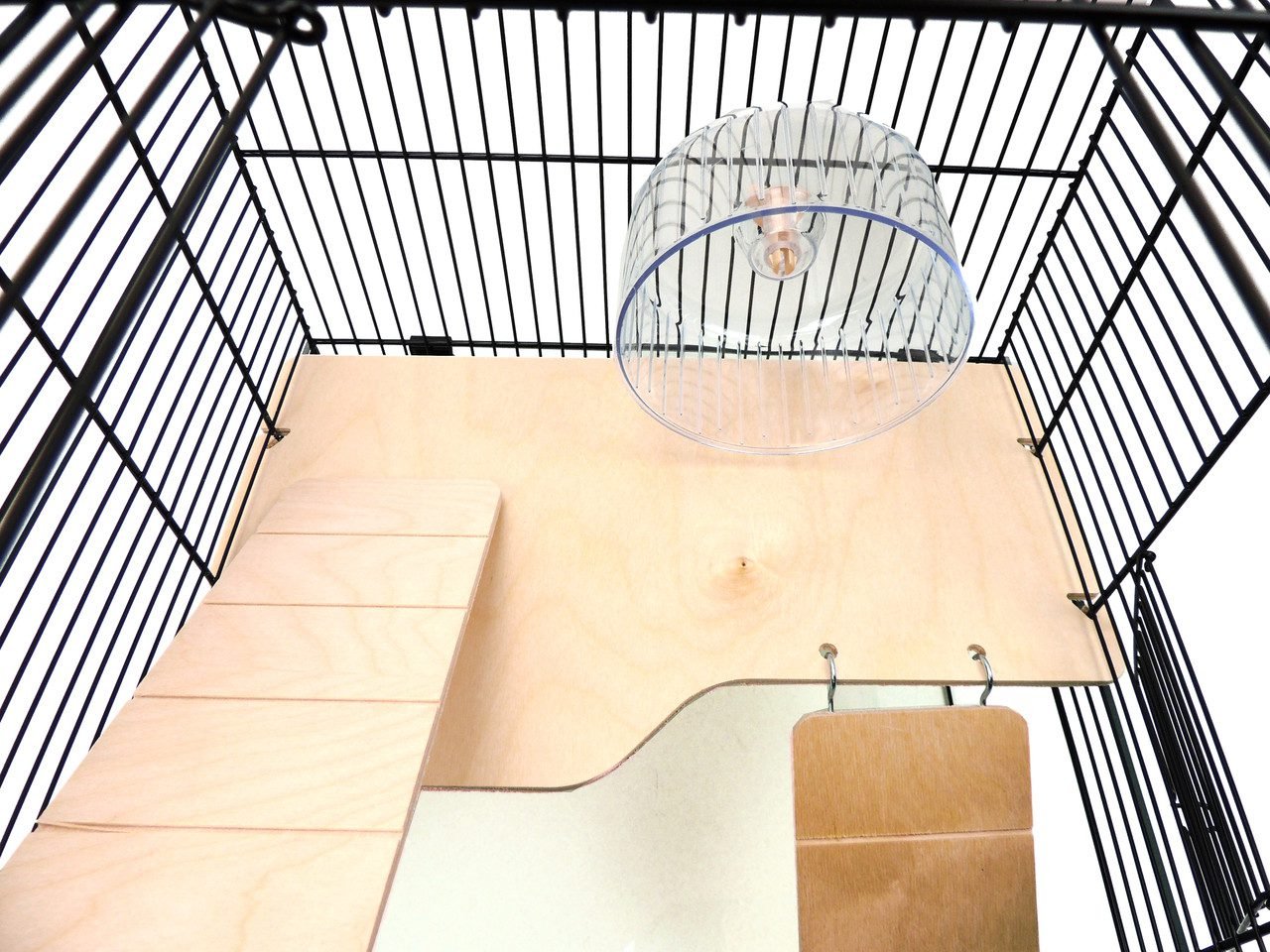 - The cage comes with two shelves and two ladders forming a multi floor system (as shown)!