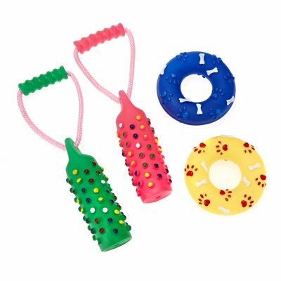 Vinyl tug & ring assortment 12pcs – 3 of each Green Tug, Pink Tug, Blue Ring and Yellow Ring